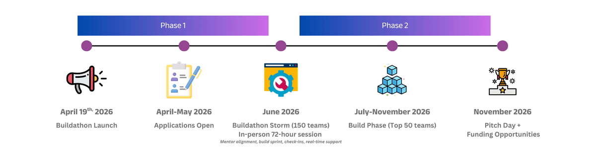 The Bharat1.ai Buildathon is a guided AI build program for builders, researchers, and teams working on real-world problem statements. In Phase 1, 150 teams will be selected to design and build systems intended to move beyond prototypes and toward real-world deployment. Participants will have access to mentorship, a structured build environment, and opportunities to iterate quickly on meaningful problems. In Phase 2, 50 teams will be selected to continue working with Bharat1.ai over 6 months, with the support needed to take their ideas further toward real-world use.